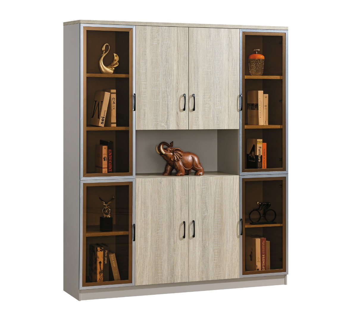 Large-capacity bookcase, beautiful color, 25mm thick shelves, brown glass with high-quality hardware fittings, sturdy and fashionable