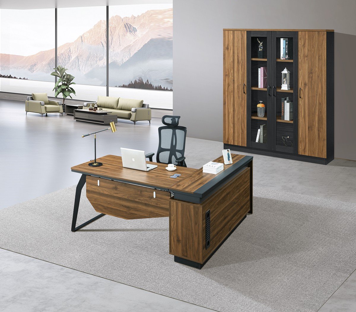 An office desk is manufactured according to the customer’s request. It can also be manufactured in multiple sizes. This office is distinguished by its elegant, streamlined shape and high quality.